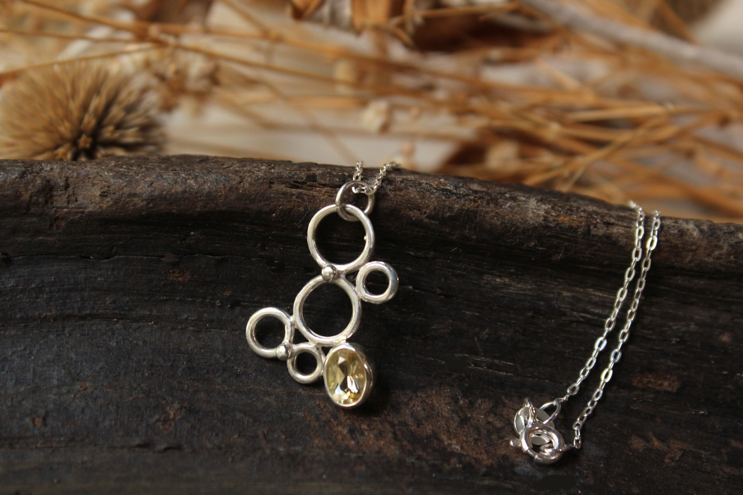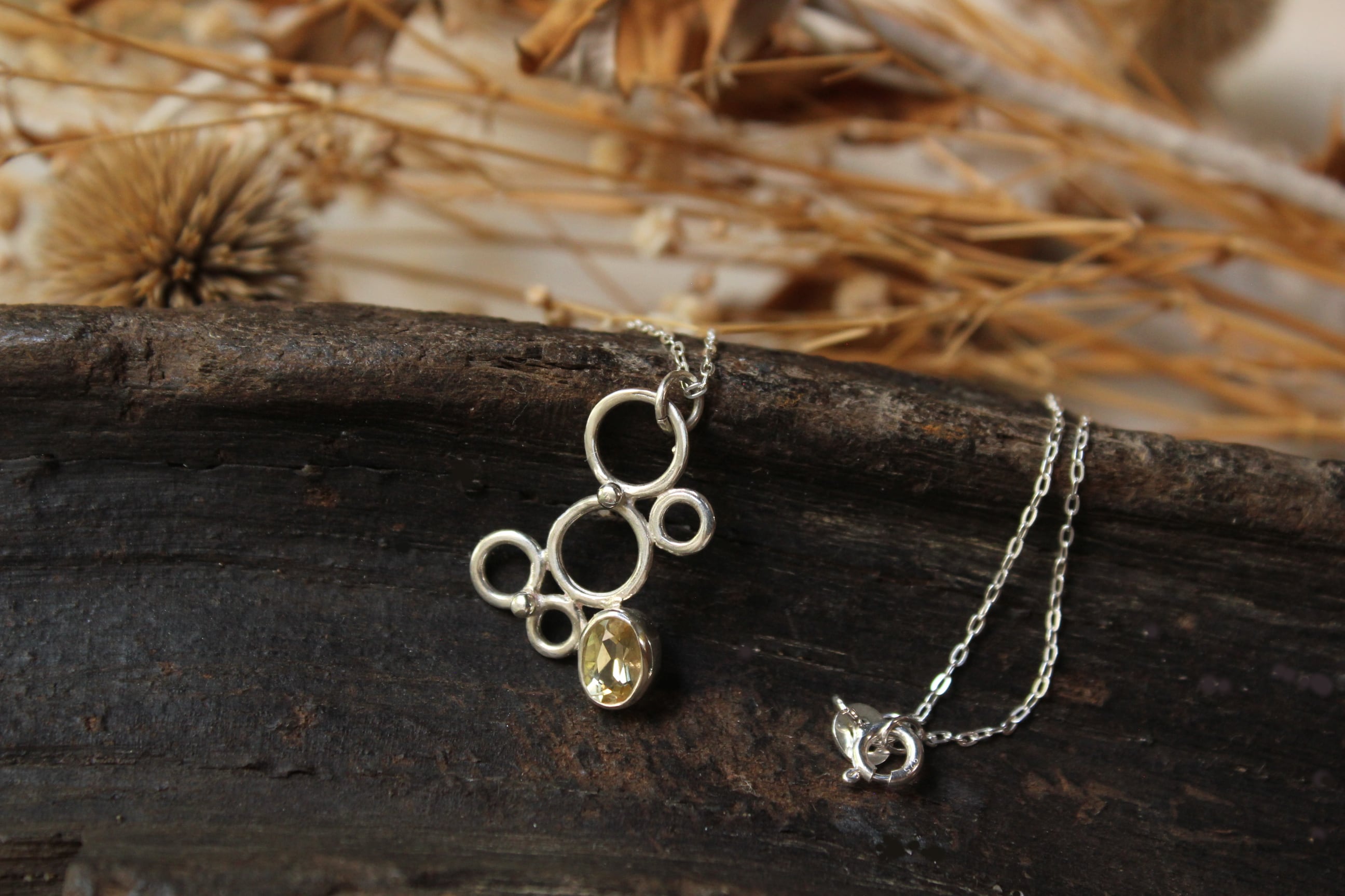 シルバーのモチーフとイエローベリルの石が美しく彩ります。