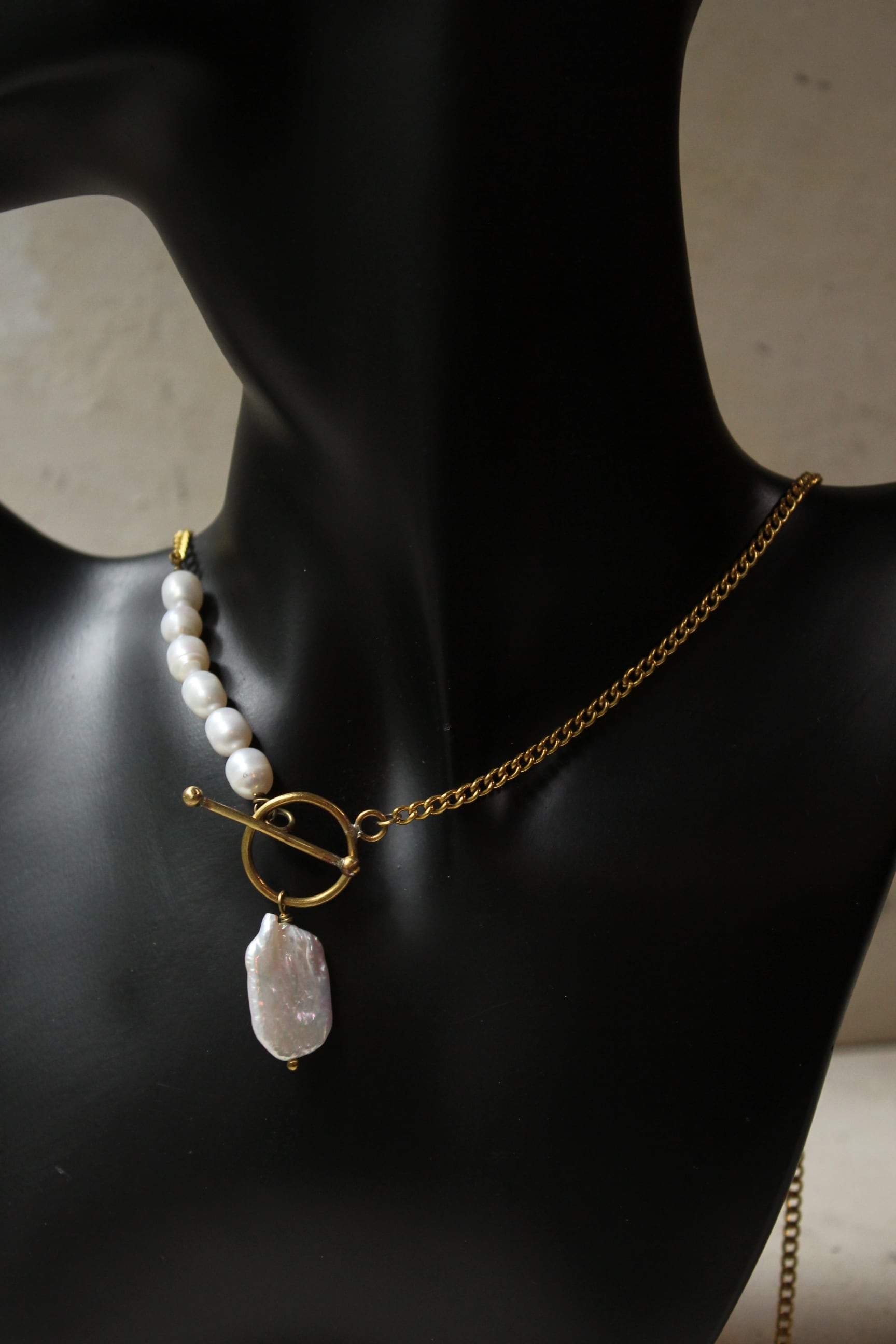 身に付けるときは、パールの間に頭を通して、しっかりとフィットさせるだけでOKです。