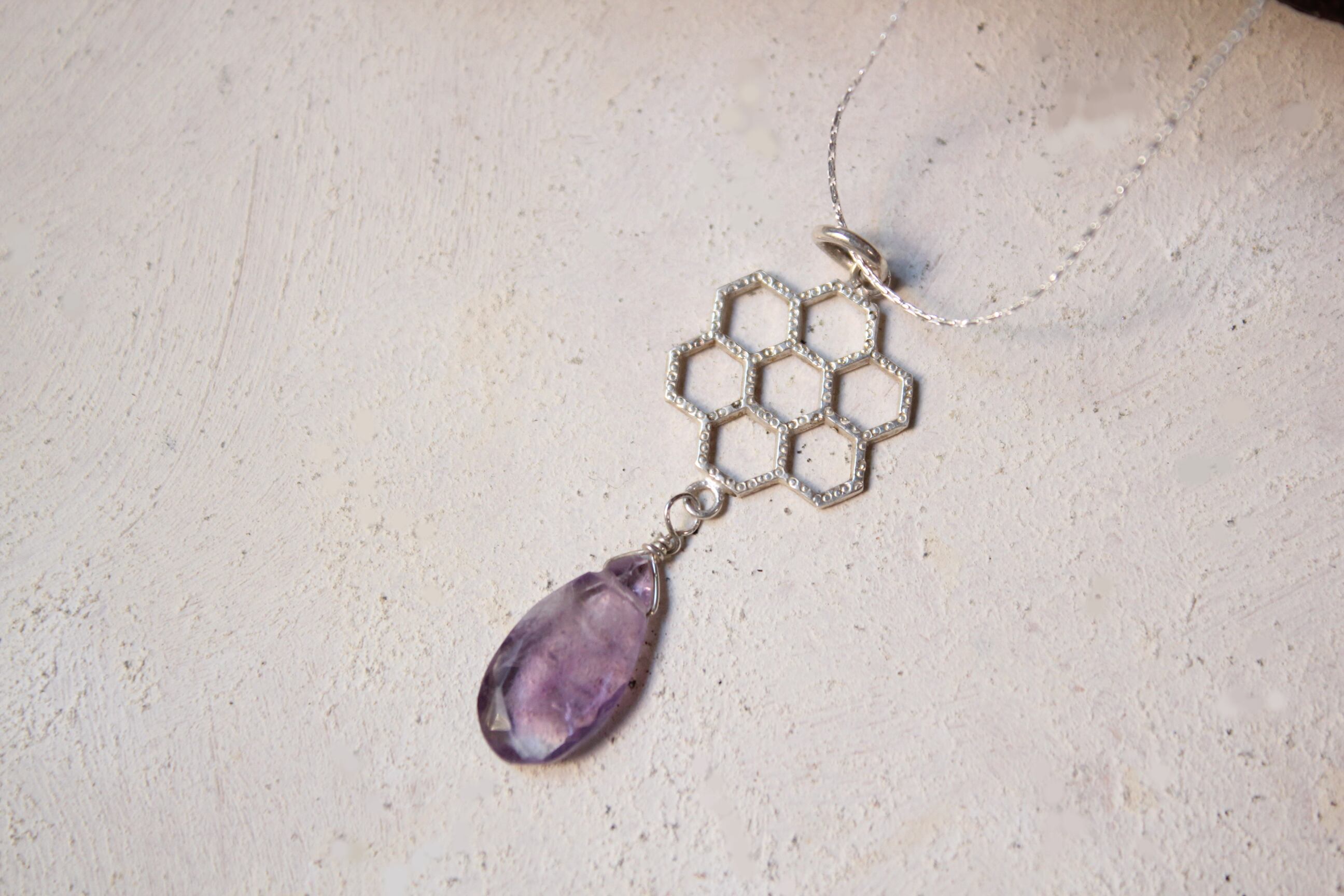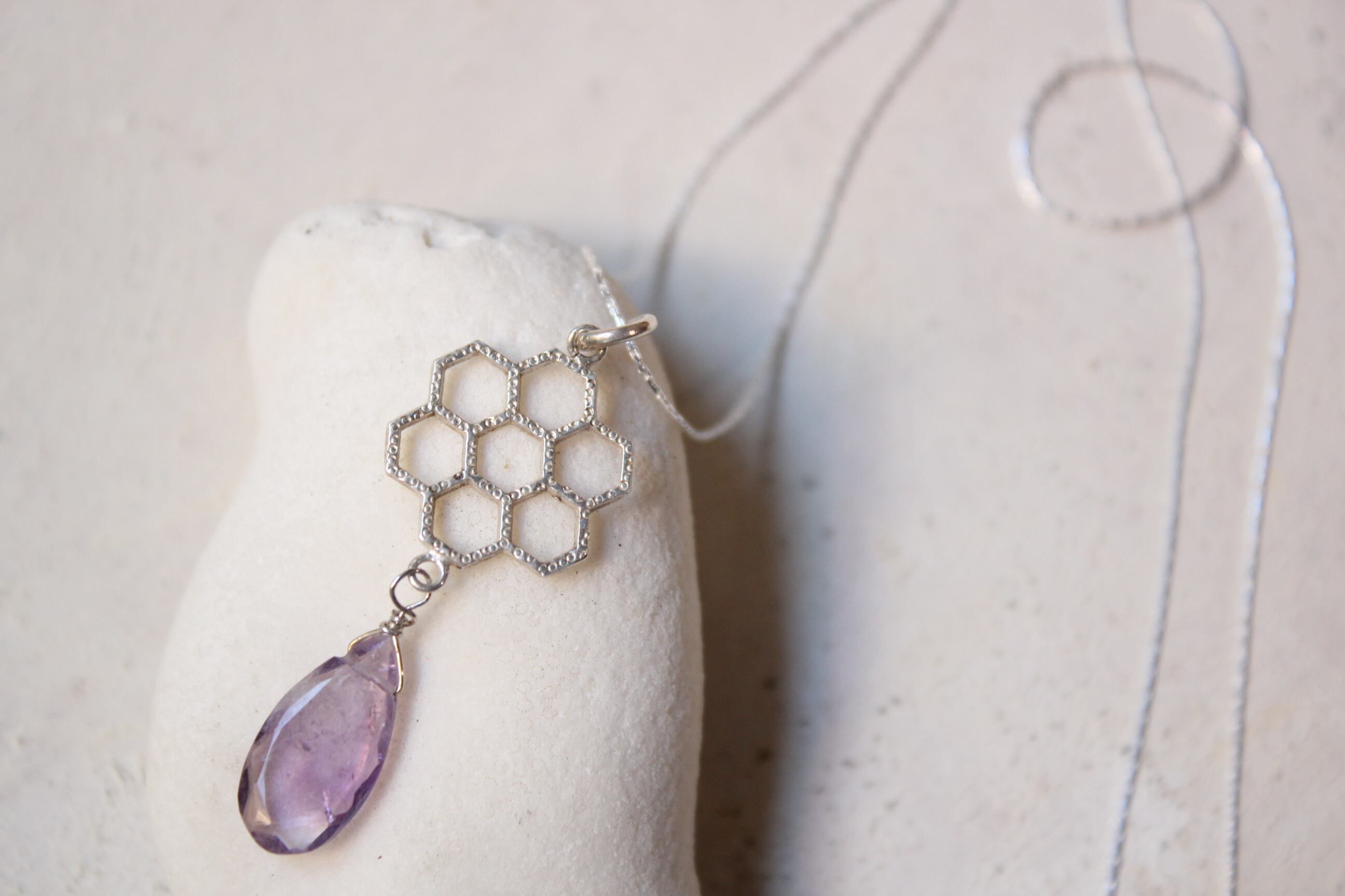 ドロップ型のアメジストの石がついています。