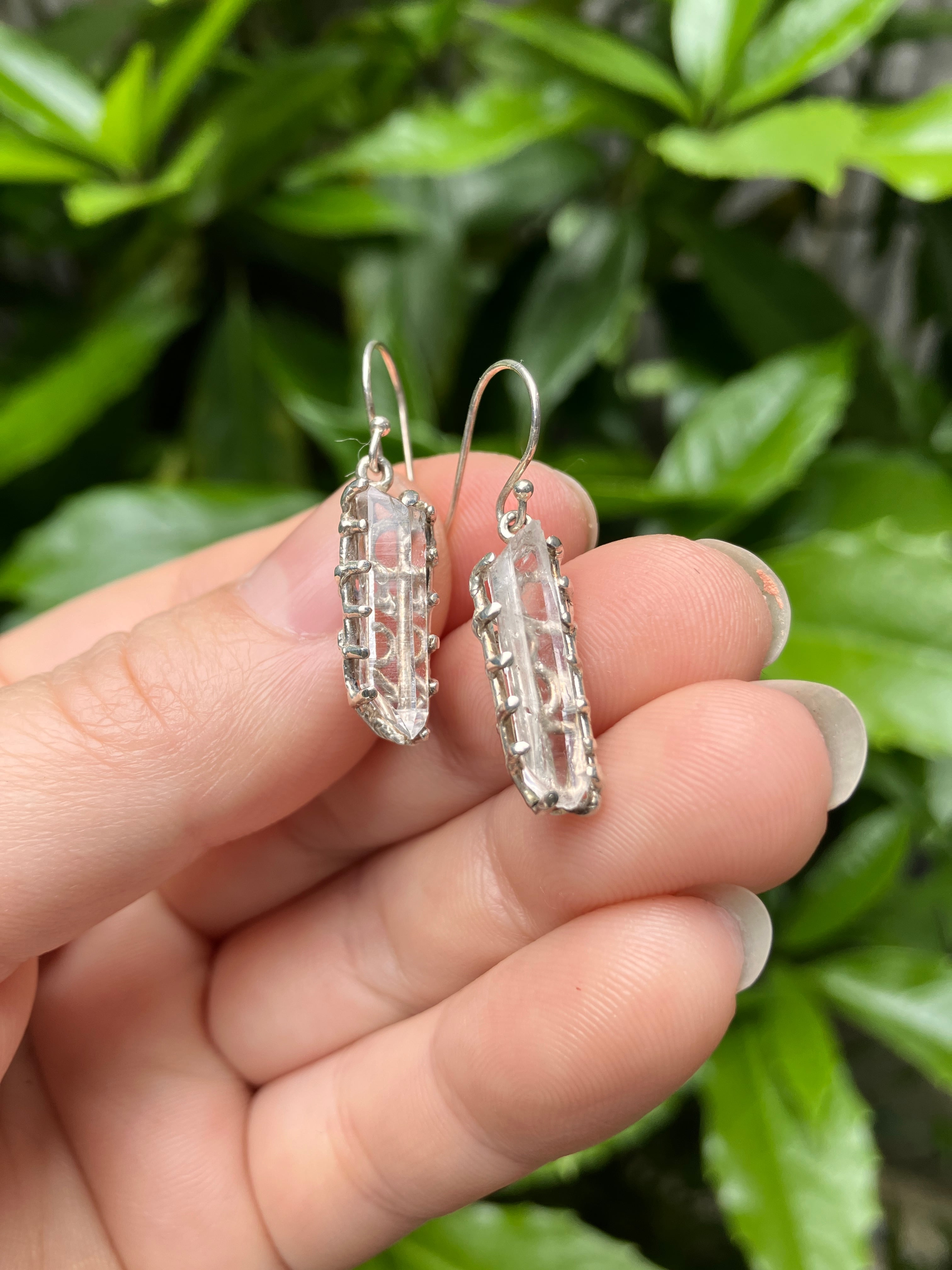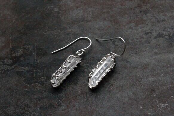 透明のクリスタルの裏側にシルバーの細やかな模様が見えて美しいピアスです。