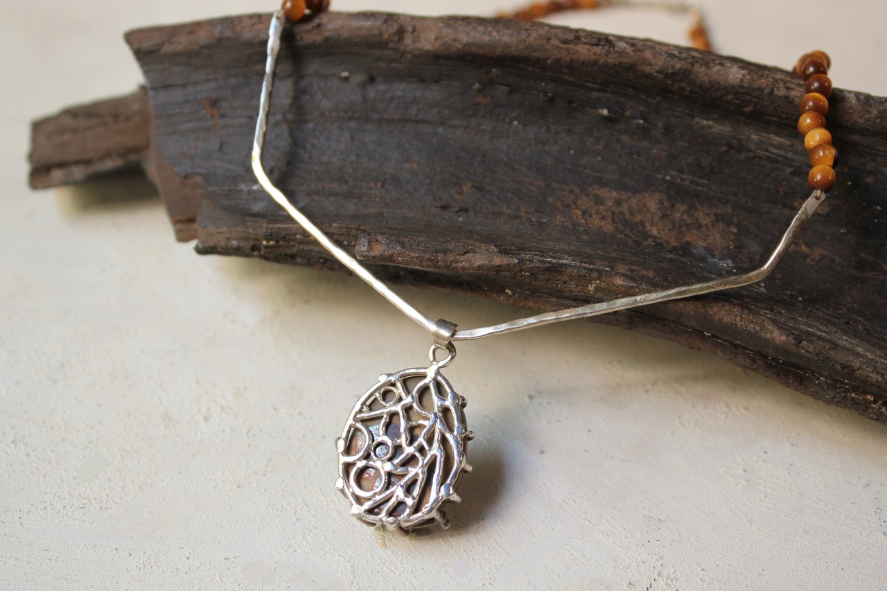チェーン部分はタイガーアイの石をつけました。