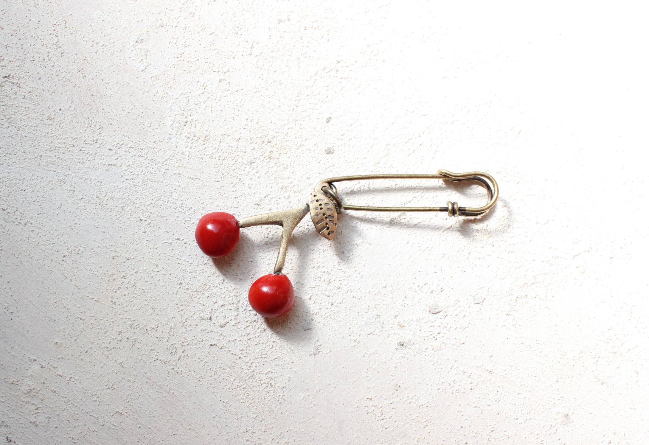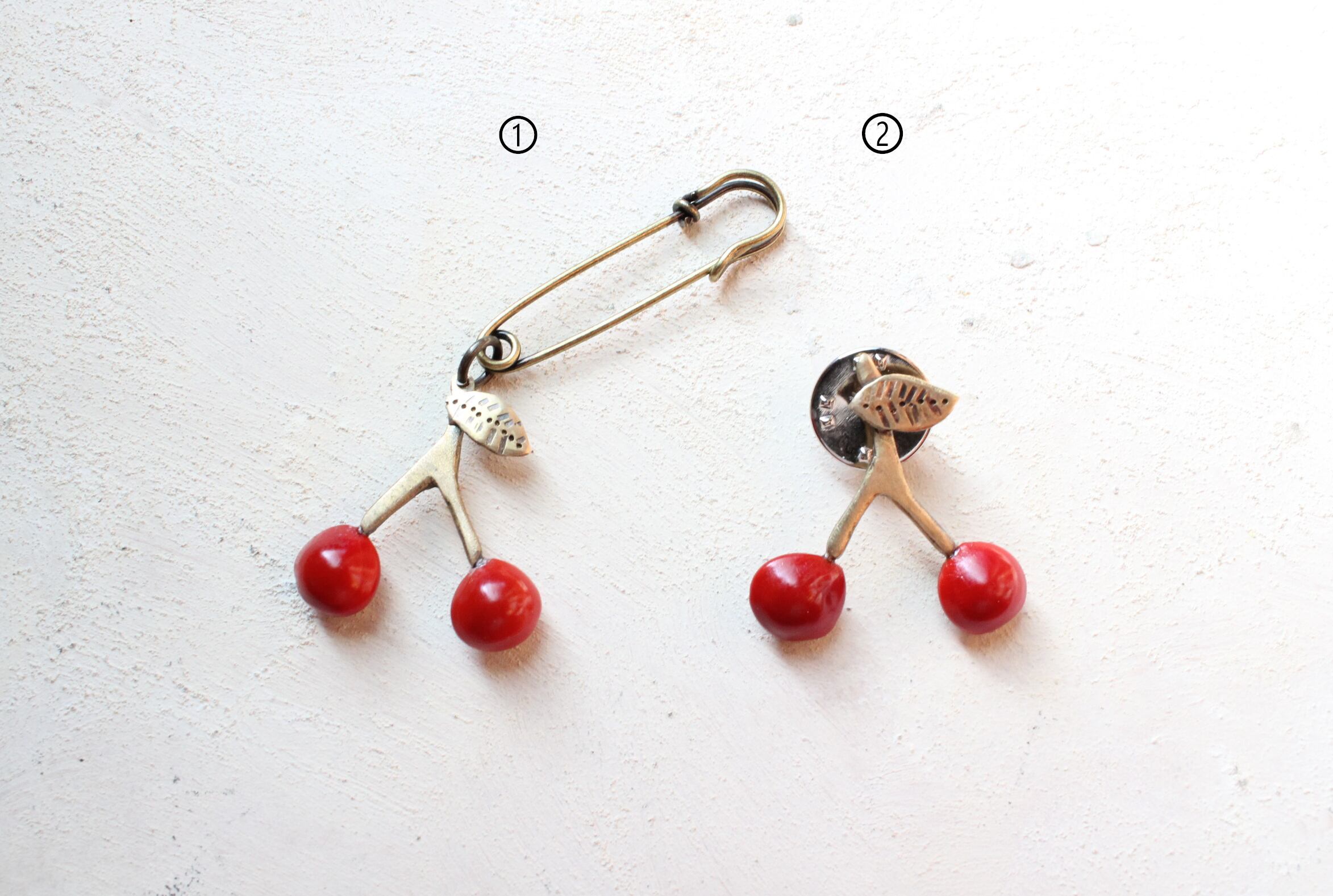 さくらんぼブローチ・ピンバッジ サガの実/真鍮