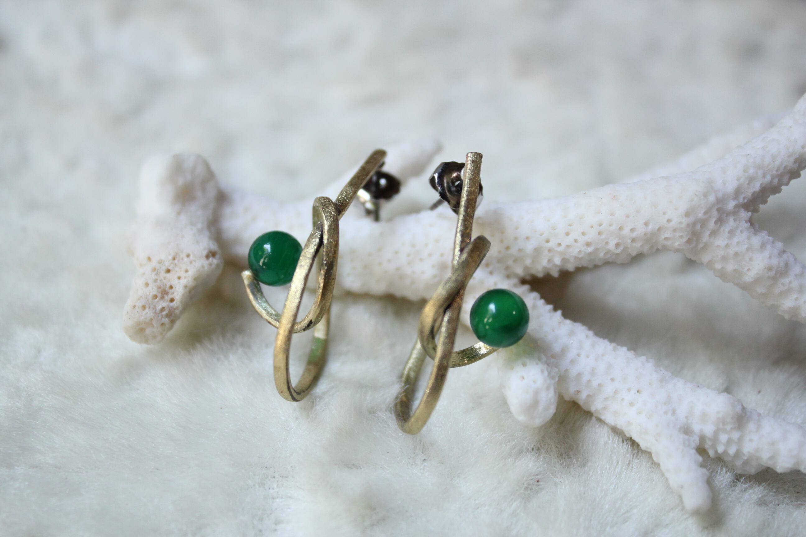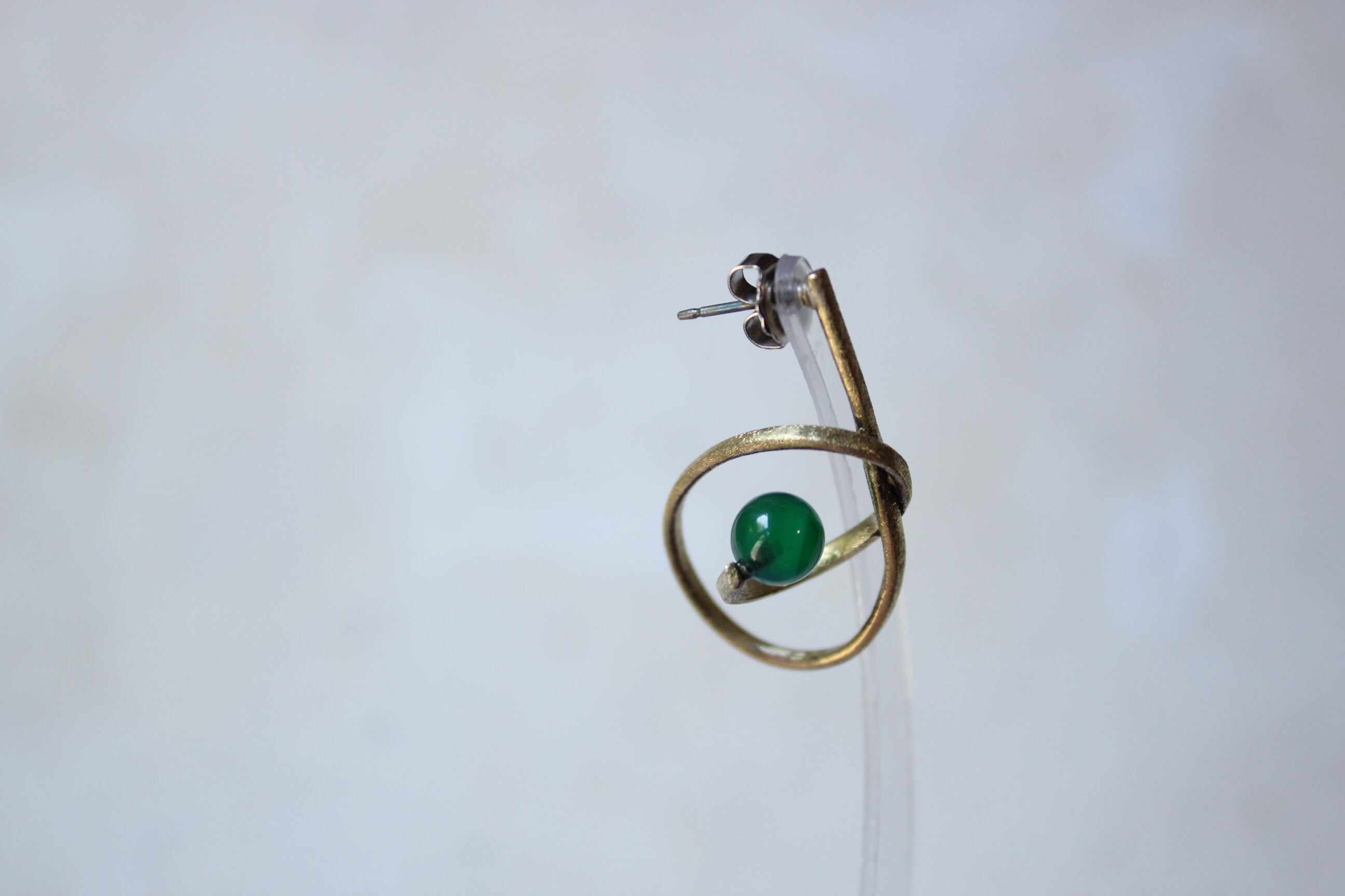 グリーンオニキスと真鍮の組み合わせもポップで、耳元のアクセントになります。