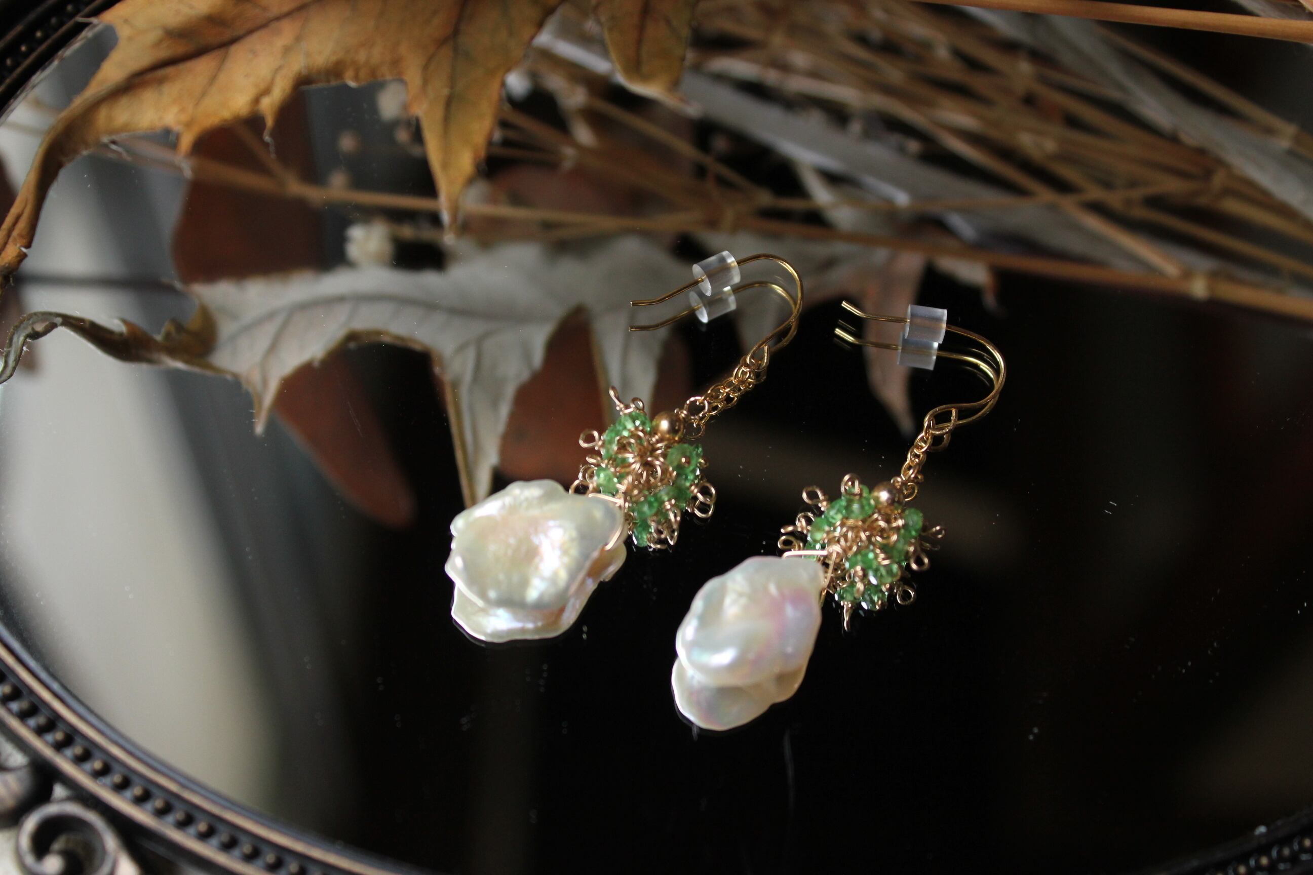 バロックパールと極小の淡水パールをつけたゴージャスなピアスです。
